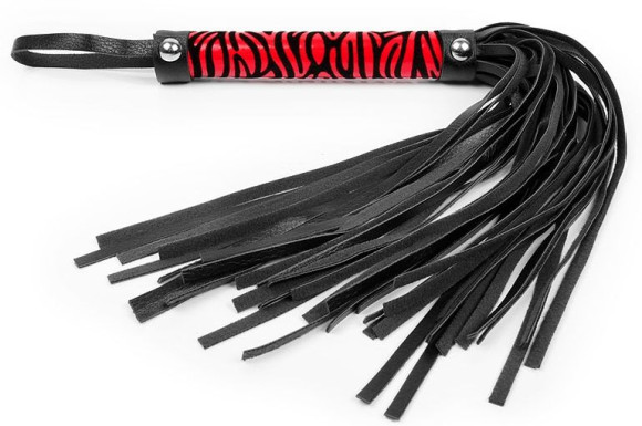 - Черная многохвостовая плеть с круглой красной ручкой-зеброй - 39 см.