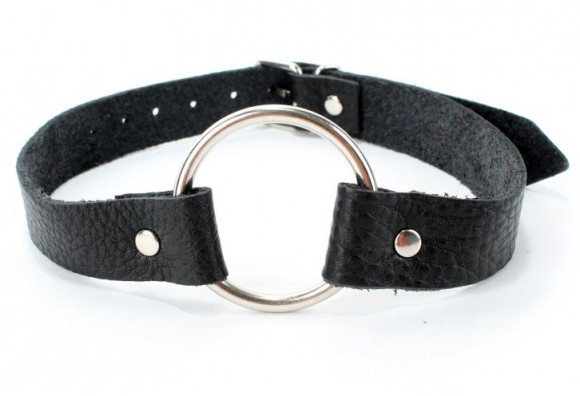 Кляп выполнен из натуральной кожи высокого качества черного цвета. Кольцо из прочного метала закреплено ремнями. Размер регулируется пряжкой сзади, подойдет на обхват от 33 до 50 см. Надежный кляп для БДСМ игры. Диаметр кольца - 4,5 см.