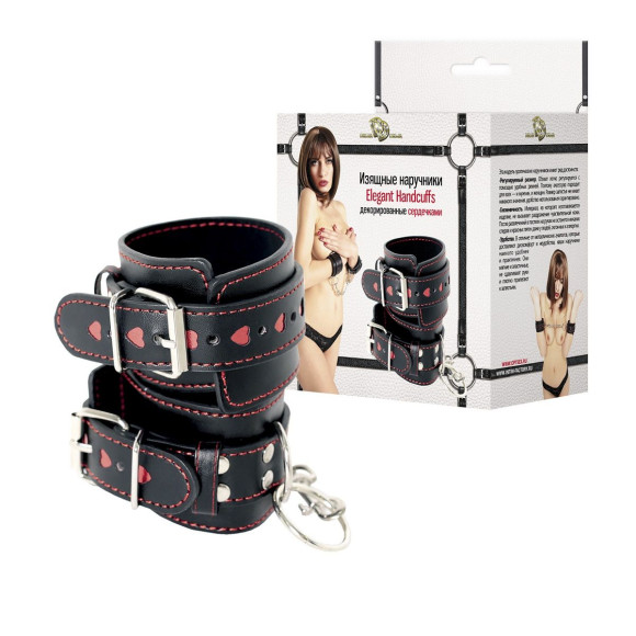 Чёрные наручники с красными сердечками на манжетах отзывы