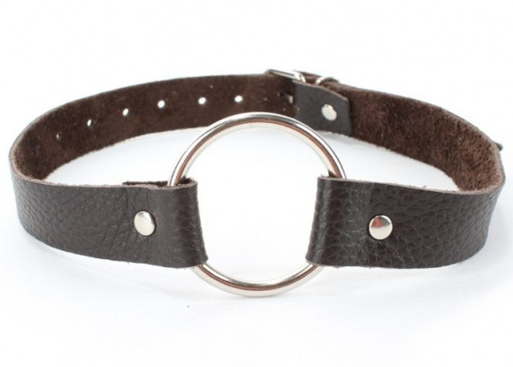 - Коричневый кожаный кляп с металлическим кольцом