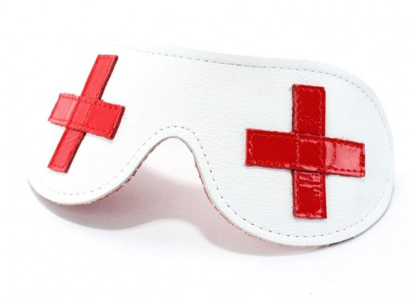 Маска из натуральной белой кожи с красными лаковыми крестами отлично подойдет для тематической игры. Надежная резинка обеспечивает хорошую фиксацию. Если решите изменить образ ,просто переверните маску другой стороной. Подклад выполнен из перфорированной красной кожи. Благодаря эластичной резинке, размер универсальный. Ширина резинки - 2 см.