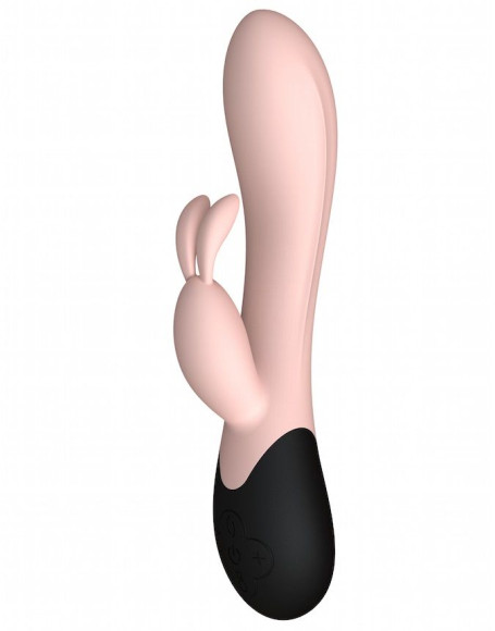 Персиковый вибратор Gemini с клиторальным стимулятором и нагревом - 20,8 см.