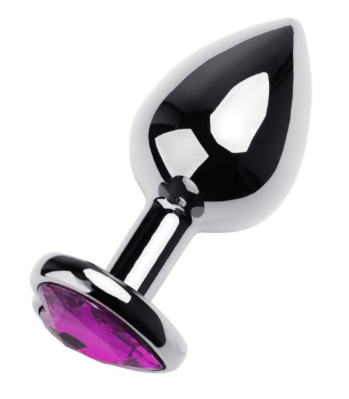 Серебристая анальная втулка с фиолетовым стразом-сердцем - 9,5 см.
