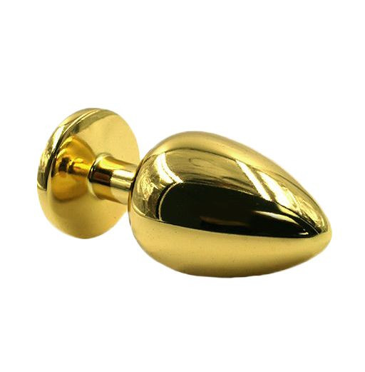 - Золотистая алюминиевая анальная пробка с светло-розовым кристаллом - 6 см.